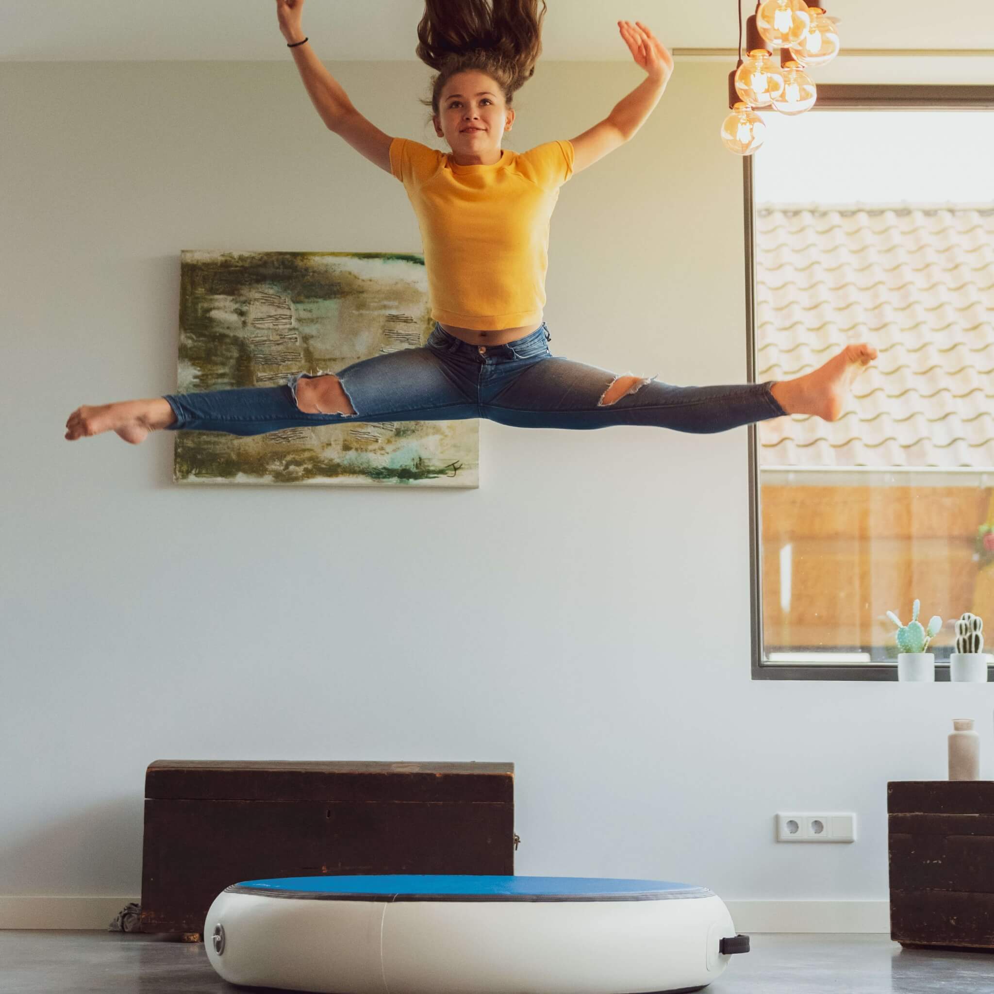 Der AirSpot passt in jedes Zimmer und ist im Nu aufgebaut. Perfekt für Sprünge, Flips und alle möglichen Turnkunststücke. Er ist weich, er ist stabil, und er ist bereit für Action!